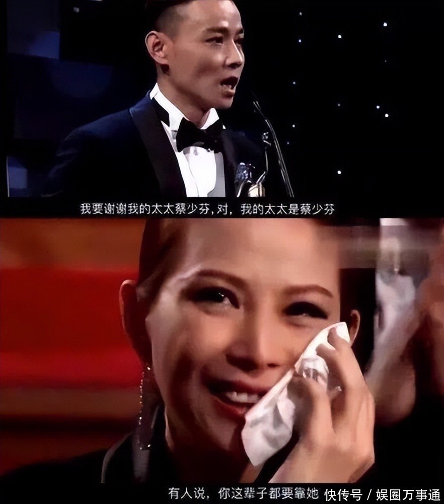 他先是感谢蔡少芬,在低谷期的陪伴与支持,一向不爱表达爱意的他,后来还向蔡少芬大胆示爱,镜头转到蔡少芬时,她早已喜极而泣。